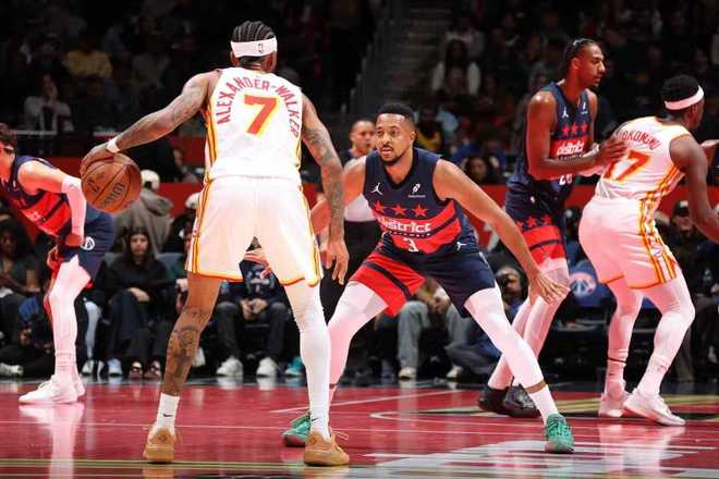 老鹰过去两场连续战胜鹈鹕与黄蜂收获2连胜,奇才过去14场遭遇14连败稳居联盟垫底位置。本场奇才缺少约翰逊、巴格利与乔治,老鹰缺少特雷-杨。首节开局奇才连中三分,率先取得18-2领先优势,并在之后继续扩大31-8领先优势。奇才持续保持高效投篮,进一步拉开45-16领先29分优势,老鹰回敬一波7-0攻势追分,首节结束奇才45-23领先老鹰22分优势。老鹰被限制28中9,其中三分14中3,杰伦4中0得到0分。反观奇才25中15达到6成准星,其中三分高达11中8,麦科勒姆4记三分12分与基斯珀特4记三分16分。